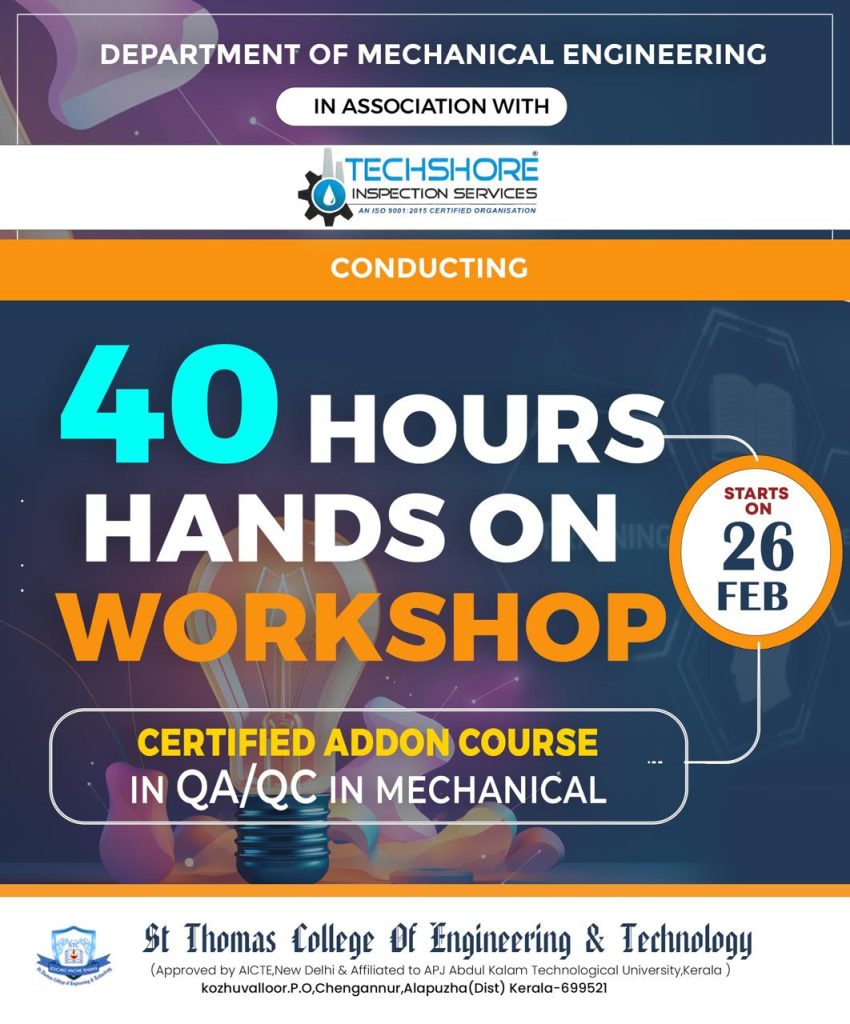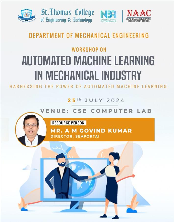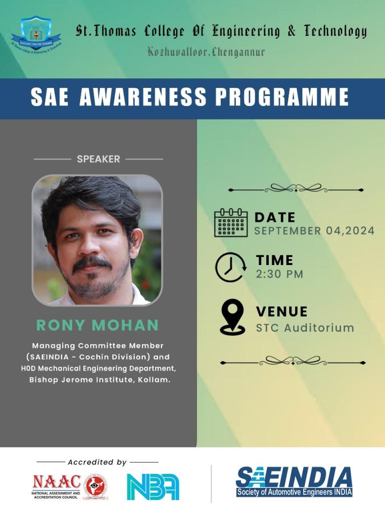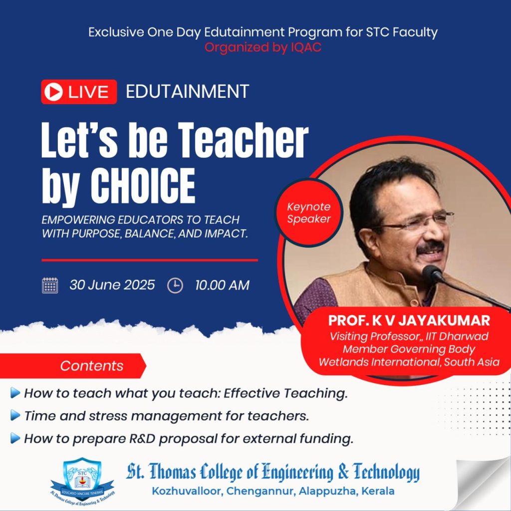 - Resource person for delivering a session on “From Subractive to Additive Manufacturing” at St. Thomas College of Engineering and Technology, Kannur.